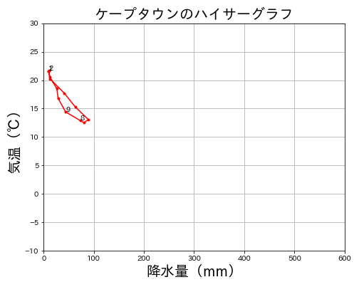 実際にケープタウン(南アフリカ)のハイサーグラフを確認してみましょう。